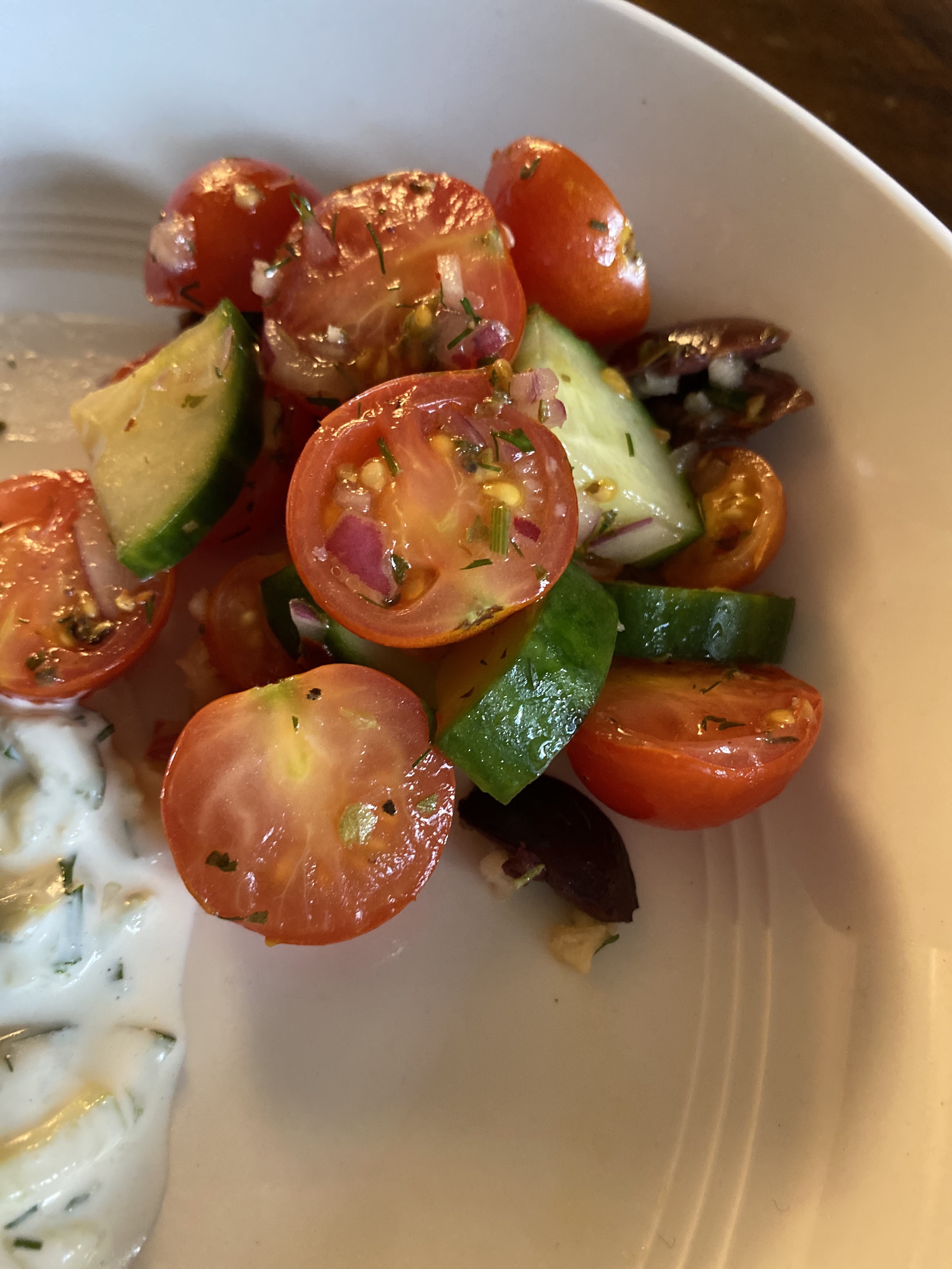 An elevated take on a plain tomato and cucumber salad that will be sure to excite your taste buds with its Mediterranean flair. Pairs beautifully with my Gyro meatballs and Garlicky Tzatziki sauce or as a side dish with any meal.